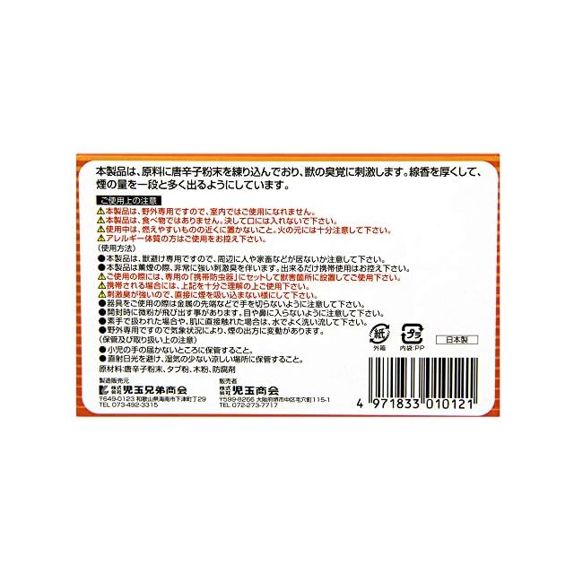 商品名:児玉兄弟商会 防虫線香(Bouchusenko) アウトドア キャンプ 動物除け 獣よけ線香 20巻 【日本製】 01110