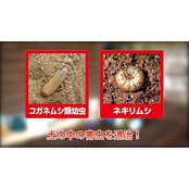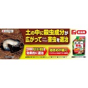 特徴:土の中に潜むコガネムシ幼虫やネキリムシだけでなく、きゅうりやかぼちゃのウリハムシ幼虫も退治する土壌害虫の殺虫剤です。
