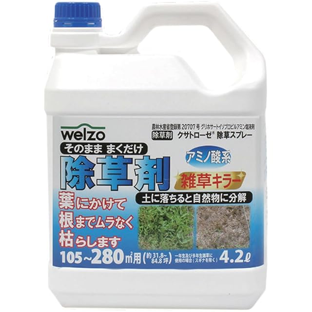 商品名:ウェルゾ(Welzo) 除草剤シャワー 4.2L【そのまま撒くだけ】【105~280㎡用】【土に落ちると自然物に分解】【アミノ酸系】大容量 お徳用 雑草 除草 液体