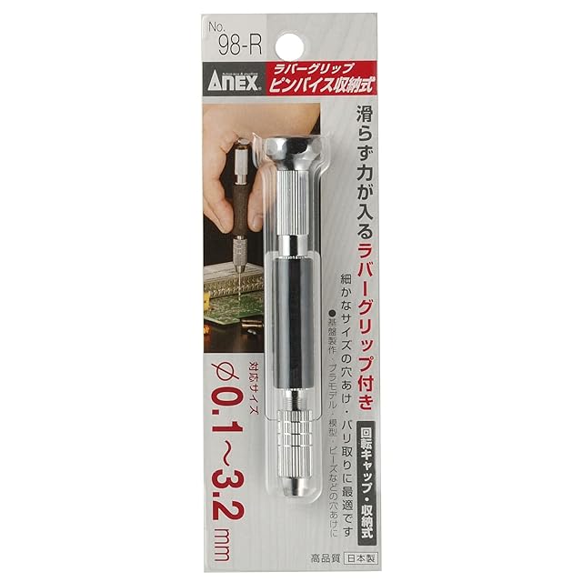 アネックス(ANEX) ピンバイス ラバーグリップ 収納式 0.1~3.2mm No.98-R【プラモデルやハンドメイドの穴あけ作業に】精密 模型 ミニ四駆 ガンプラ ドリル | emishop315