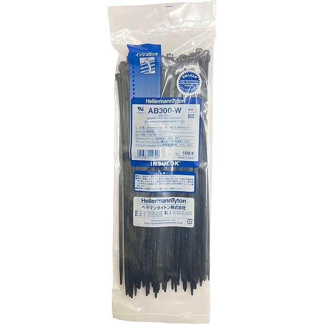 商品名:HellermannTyton ヘラマンタイトン 結束バンド インシュロック AB300-W 100本入 耐候・屋内外用グレード 黒
