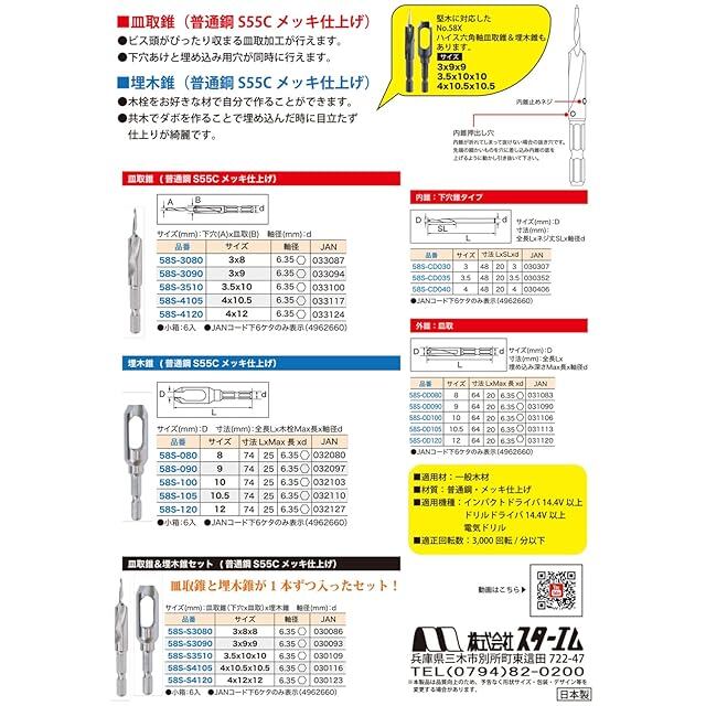 商品名:スターエム 58S-S3090 皿取錐&埋木錐セット 3×9×9