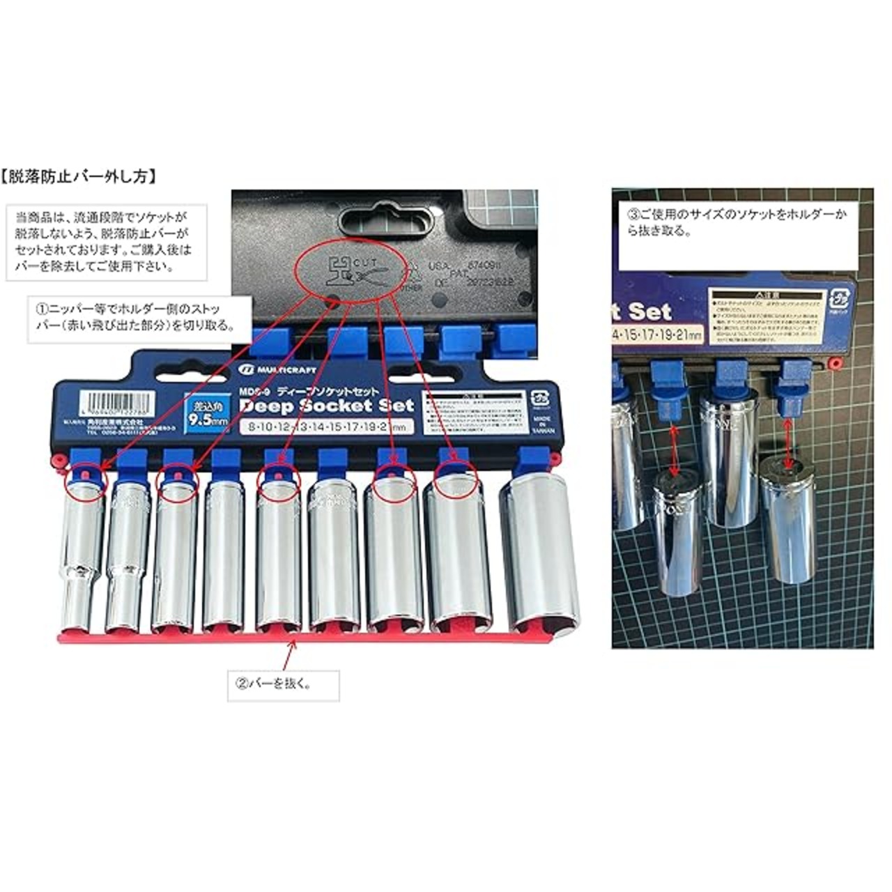 角利(KAKURI) ディープソケットセット 9本組 全長64mm 差込9.5mm角(3/8inch) 8/10/12/13/14/15/17/19/21mm ロングタイプ マルチクラフト MDS-9 | emishop315