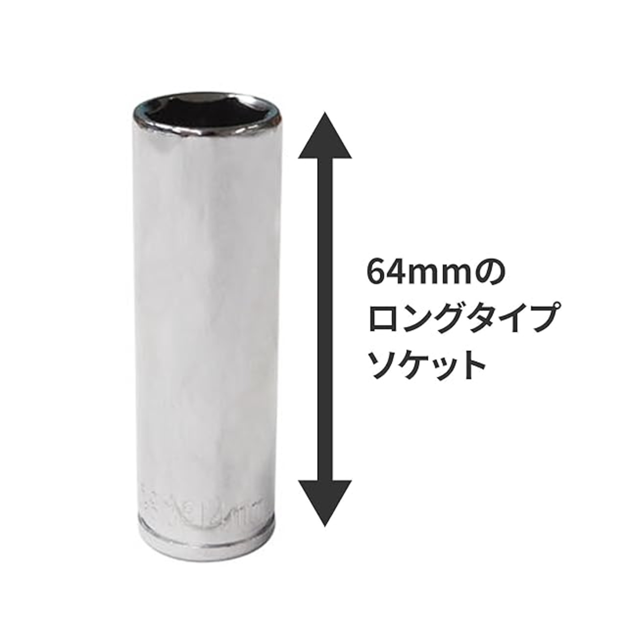 商品名:角利(KAKURI) ディープソケットセット 9本組 全長64mm 差込9.5mm角(3/8inch) 8/10/12/13/14/15/17/19/21mm ロングタイプ マルチクラフト MDS-9