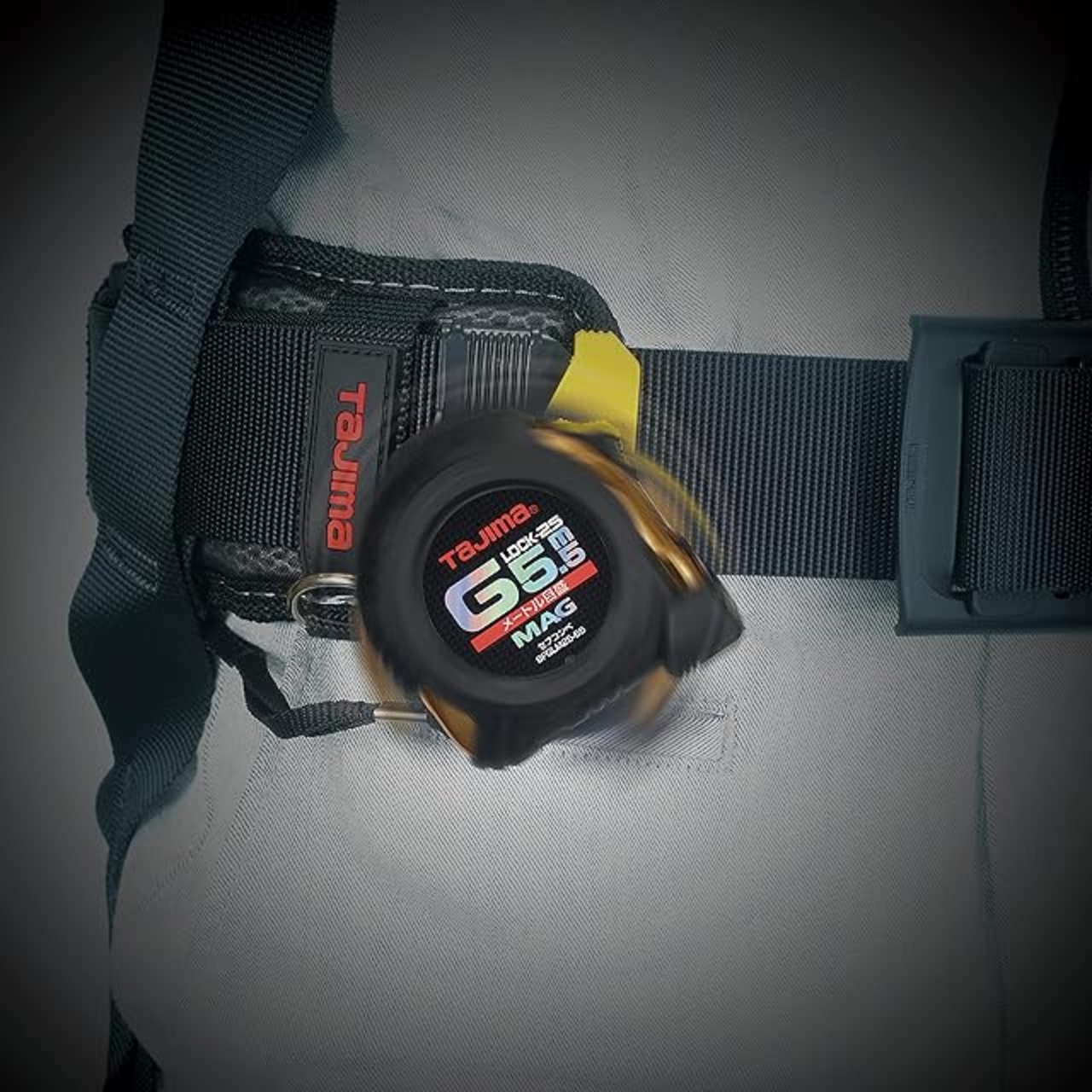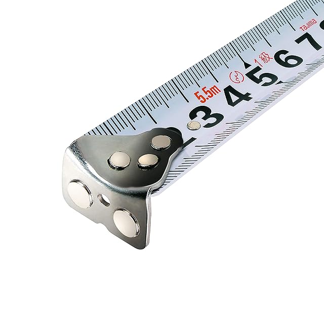 ●JIS1級●両面目盛●ストラップ付●落下防止ベルトホルダー付●プロテクター付3点カシメ爪●爪:磁石付爪仕様(ネオジウム磁石260mT)●取り付け可能ベルトサイズ:幅60mm以内、厚み5.5mm以内