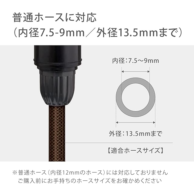 適合ホース:内径 7.5-9mm/外径 13.5mm まで