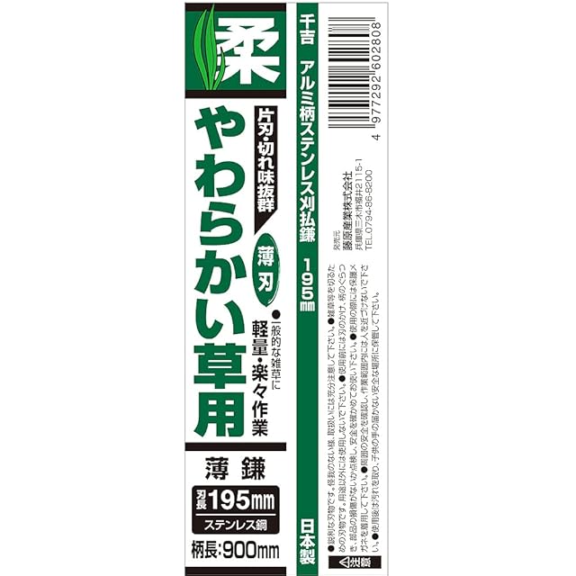 商品名:千吉 アルミ柄ステンレス刈払鎌 195MM