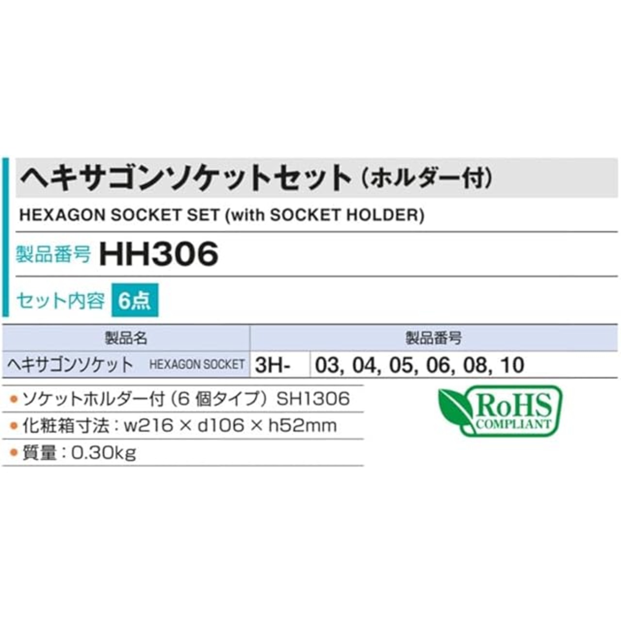 セット内容2:ヘキサゴンソケット3H-03/04/05/06/08/10