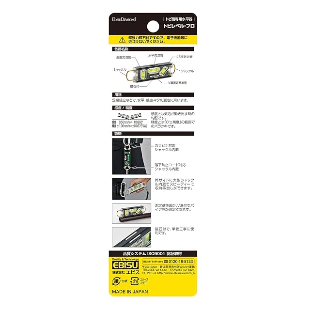 商品名:エビス(EBISU) 水平器 トビレベル・プロ ED-TBPBR 足場組立用 ブラック/レッド