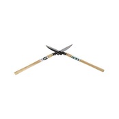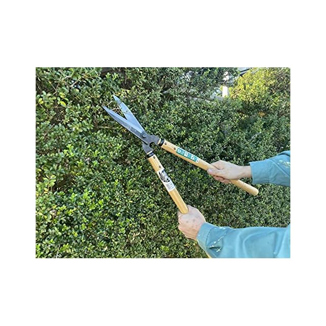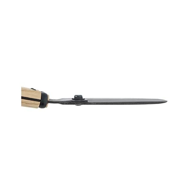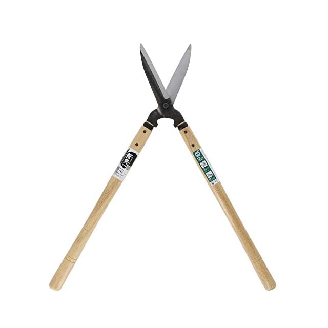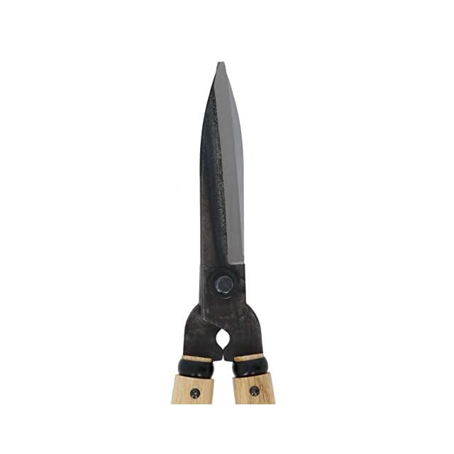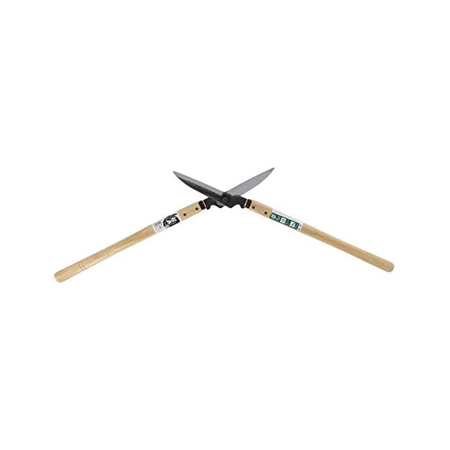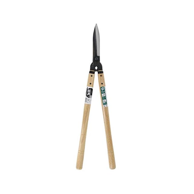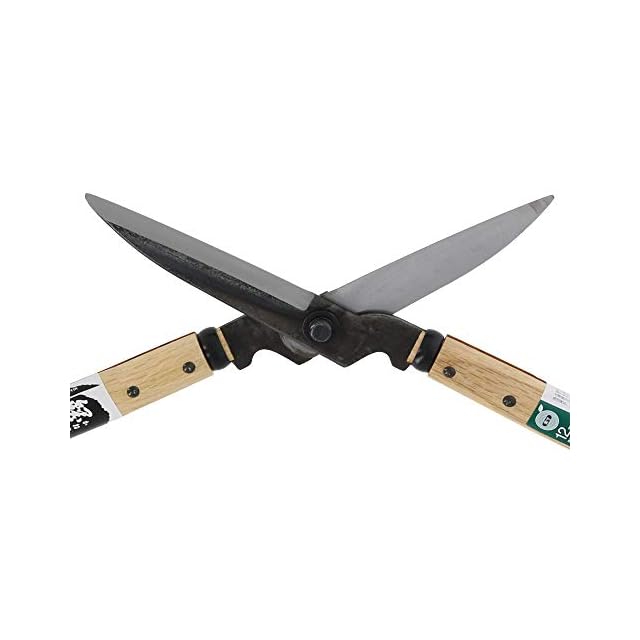特徴<br>刃物鋼を熟練を要した職人が焼入れし仕上た刃物。<br>ダブル焼入れ処理され、刃物の腰が強く長切れします。<br><br>仕様<br>外形寸法:655×195×45<br>重量:825g<br>表面処理:ショット磨き処理。<br>刃渡り:150mm<br>柄の長さ:450mm<br>全長:655mm<br><br>材質<br>鋼:S55C刃物鋼<br>刃:刃物用炭素鋼<br>柄:染樫<br><br>用途<br>一般刈込<br><br>注意<br>木以外の仕様はしないでください。<br>けが防止のため手袋等をはめて作業を行ってください。<br>無理な使用は刃欠け、刃折れの原因となります。