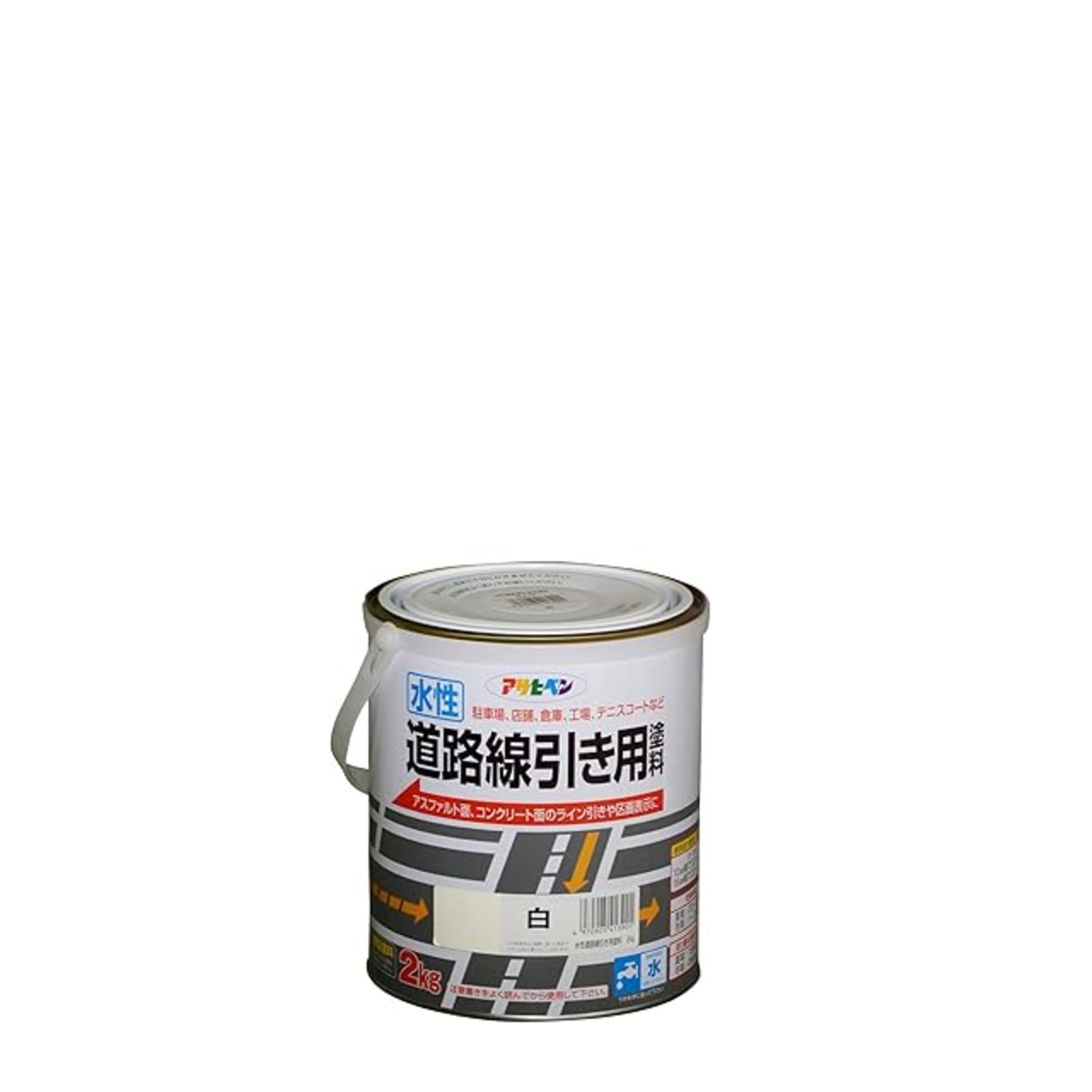 商品名:アサヒペン 塗料 ペンキ 水性道路線引き用塗料 2kg 白 水性 道路 ライン引き アスファルト コンクリート 艶消し 1回塗り 滑り止め効果 速乾 耐摩耗性 耐候性 日本製