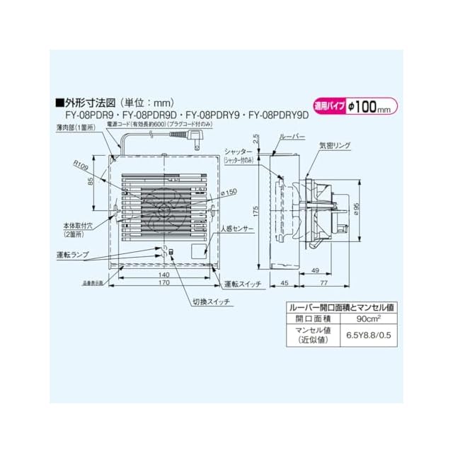 商品名:パナソニック(Panasonic) パイプファン自動運転 (人感)・格子タイプ FY-08PDRY9
