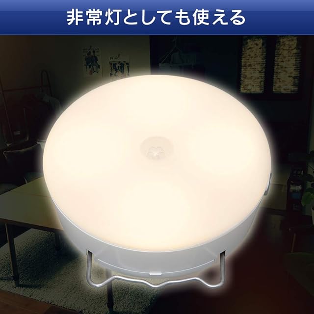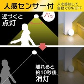 本体サイズ:直径約9.5×高さ約3.7cm、取付プレート:直径約9.1×高さ約0.7cm※両面テープ除く 本体重量(電池除く):約103g、取り付けプレート(両面テープ除く):約20g 光源:0.5W-LED×4個 全光束(明るさ)ON:約40lm、AUTO Hi:約40lm、AUTO Lo:約12lm 感知センサー:赤外線受動式センサー 明暗センサー:フォトセンサー