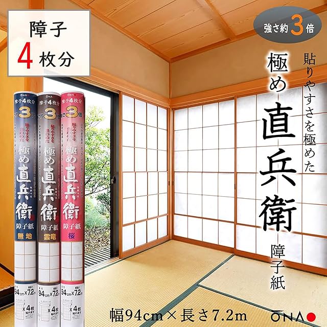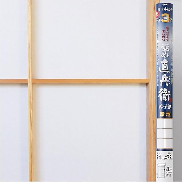 商品名:大直 障子紙 極め直兵衛(なおべえ) 巾94cm×長さ7.2m(4枚分) 強さ約3倍 一枚貼り 日本製 無地 KN-101 【貼りやすさをきわめた障子紙】