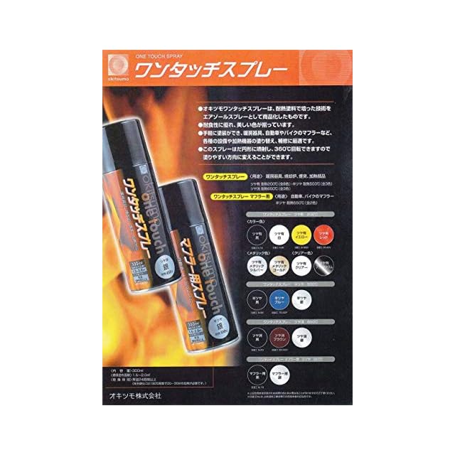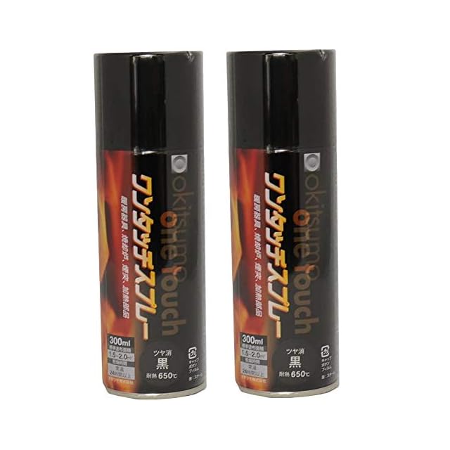 商品名:耐熱塗料 オキツモ ワンタッチスプレー 艶消し ブラック 300ml 2本セット /650℃ 黒 塗料 バイク 車 焼却炉