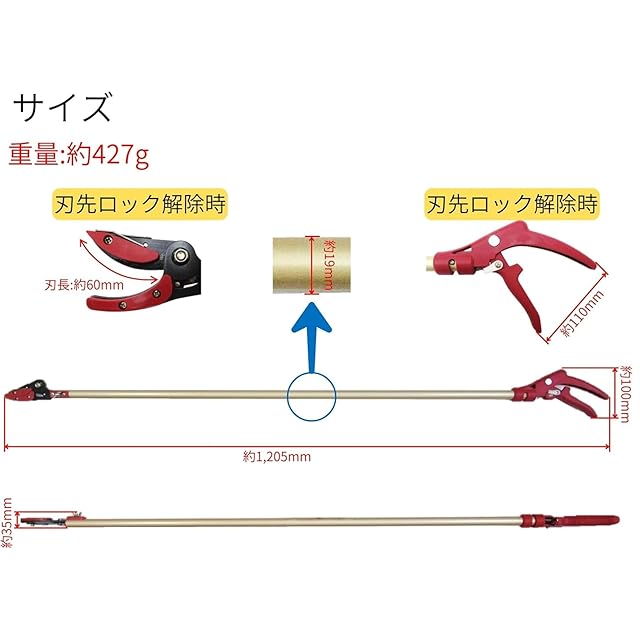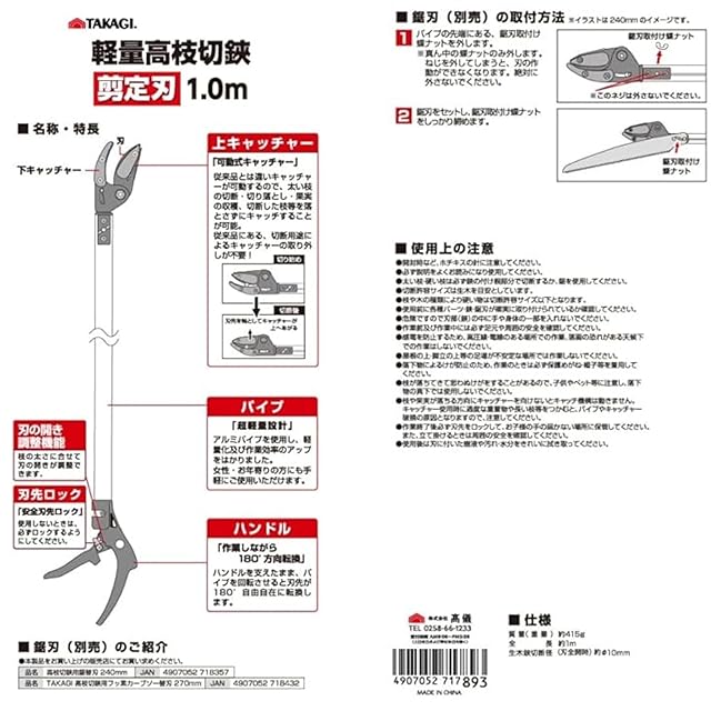 商品名:高儀(Takagi) TAKAGI 軽量高枝切鋏剪定刃1.0m 日本製 枝を切断+キャッチ 可動式キャッチャー採用 刃の開き調整可能 高枝切りバサミ 軽量 コンパクト 高枝切はさみ