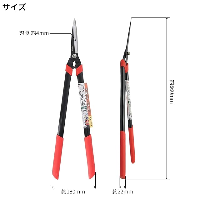 切断許容サイズ:φ約10mm(刃元)、刃長:150mm、材質:刃部/S65Mn、柄/アルミ、グリップ/ポリプロピレン