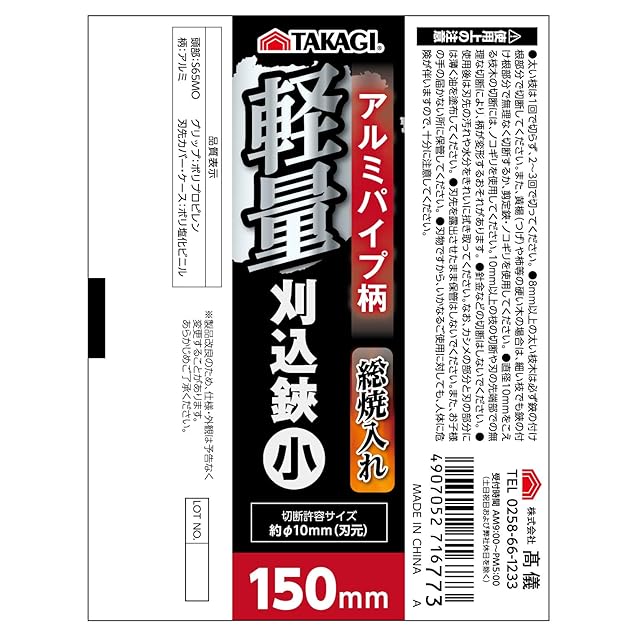 商品名:高儀 TAKAGI アルミパイプ柄 総焼入れ 軽量刈込鋏 小 150mm