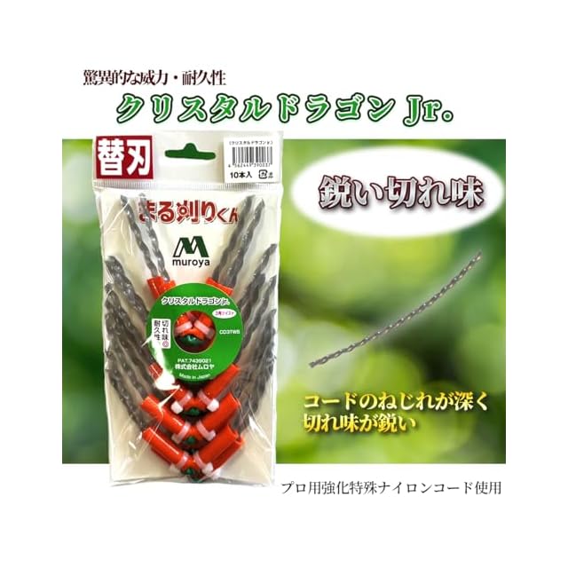 商品名:ムロヤ 万能ブラシ草刈り刃 万能強化コード まる刈りくん プロ用強化特殊ナイロンコード使用 (専用替え刃 10本 クリスタルドラゴンJr.) CD3TW5