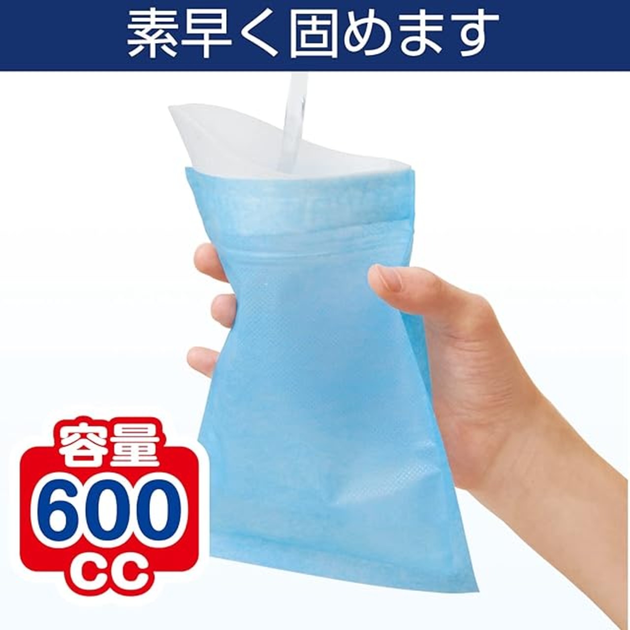 凝固剤入り尿処理袋3枚、持ち帰り袋3枚、前掛けシート1枚入り。