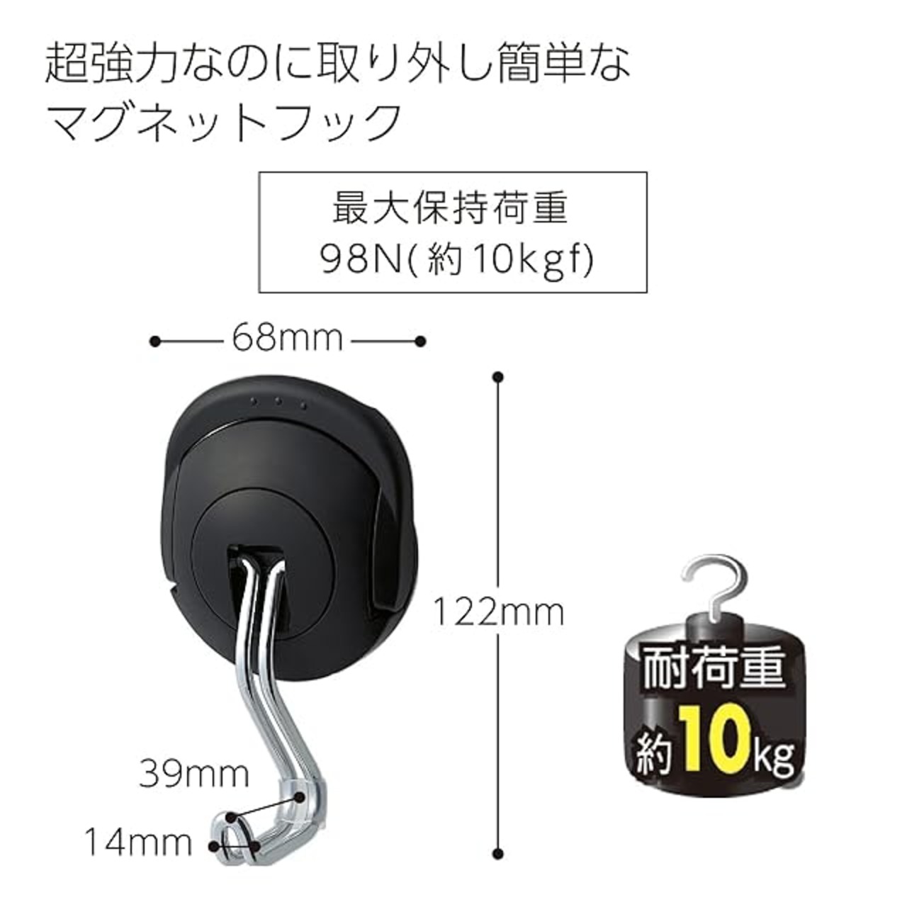 商品名:コクヨ ABS樹脂 超強力 マグネットフック タフピタ 10kgf 取り外し簡単 黒 フク-227D