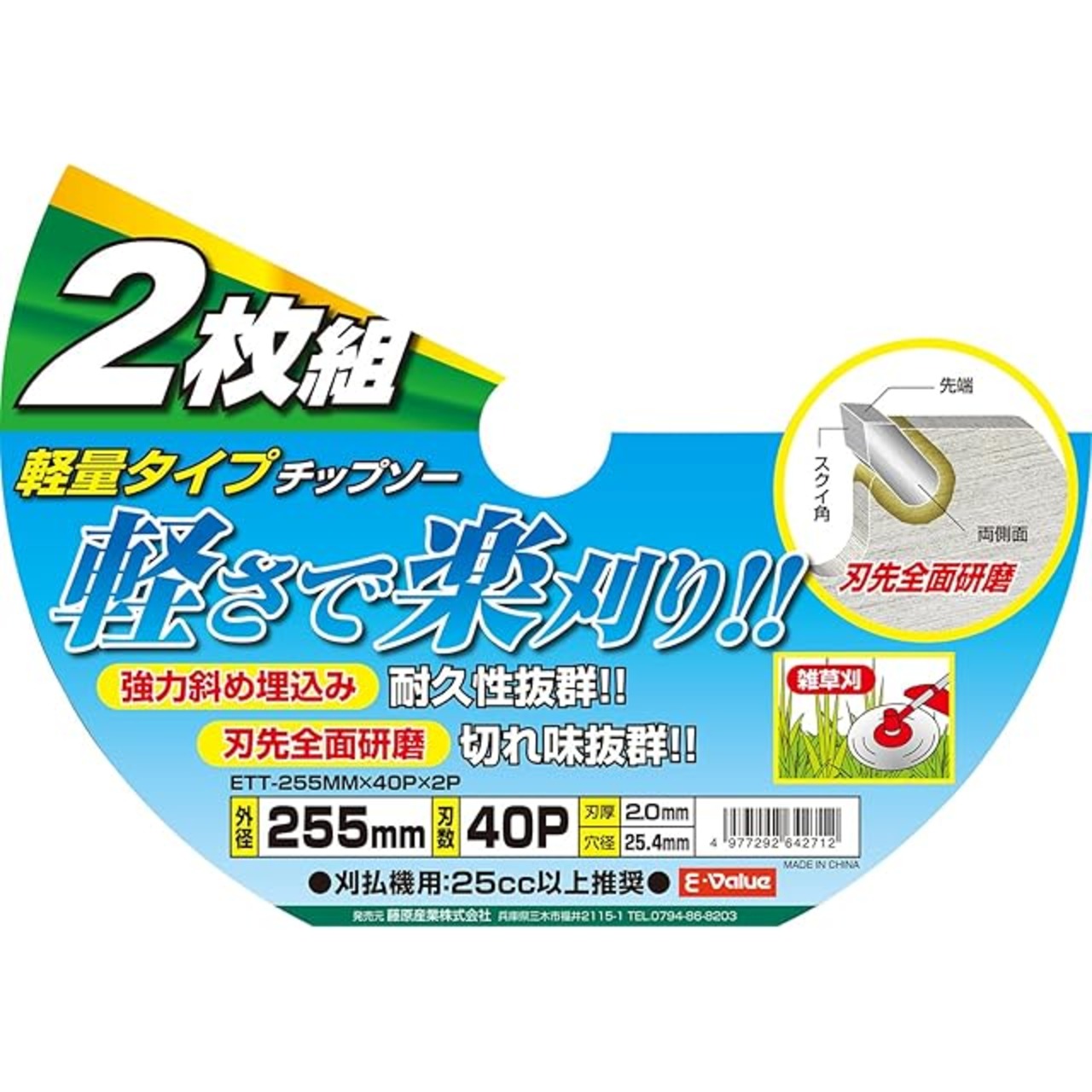 商品名:イーバリュー(E-Value) 軽量タイプチップソー 草刈り用 2枚組 255mm 25cc以上推奨 ETT-255mm×40P
