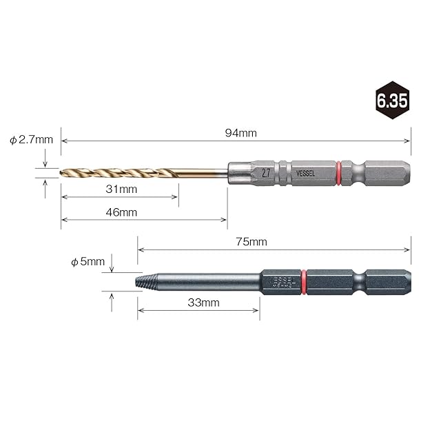 M5~M6用ドリルビット: 2.7mm、ネジビット:Φ5