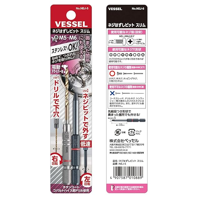 商品名:ベッセル(VESSEL) ネジはずしビット スリム なめたネジ つぶれたネジ M5~M6用 NEJ-5