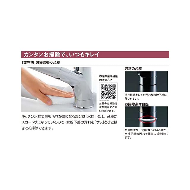 【気になる水回りもお手入れしやすい】台座がスカート状になっているので、汚れの気になる水栓下部もさっとひと拭きでお掃除できます。