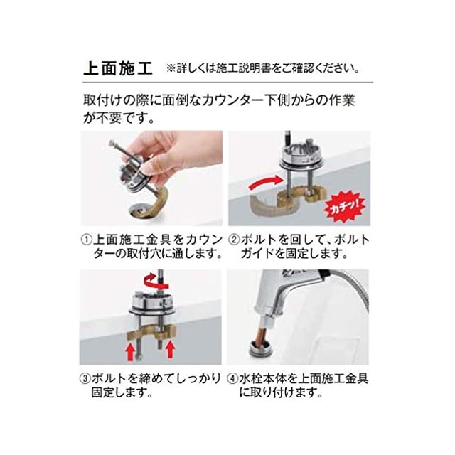 【取付簡単】上面施工設計で、取付けの際に面倒なカウンター下側からの作業が不要です。詳しくは施工説明書をご確認ください。