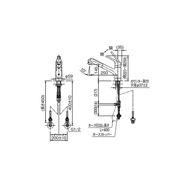 【本体仕様】取付カウンター厚み:許容範囲6~30mm/取付穴径:35~39mm/吐水パイプ長さ:250mm