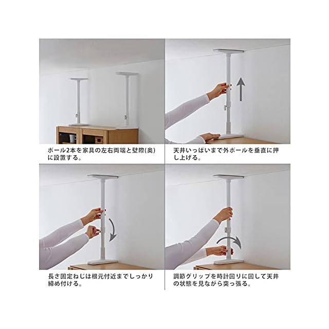 天井と家具のすき間を強力に圧着固定。安心の耐圧200kgを実現。(公的機関による圧縮試験結果による)
