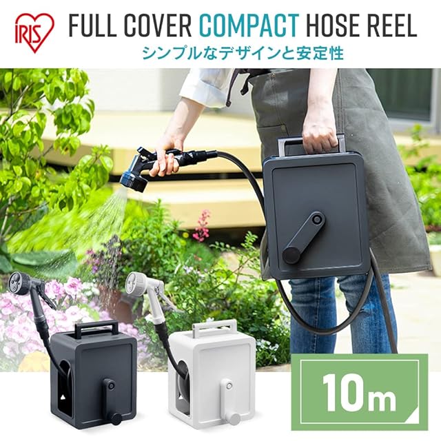 アイリスオーヤマ(IRIS OHYAMA) ホースリール 10m フルカバー仕様 蛇口ジョイント付 水形切替機能付 持ち運びしやすい持ち手付き FCH-10M ホワイト