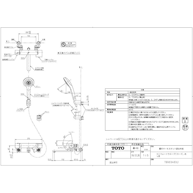最低必要水圧0.05MPa(流動時)/最高水圧0.75MPa(静止時)※快適な使用には0.2MPa程度の圧力を推奨