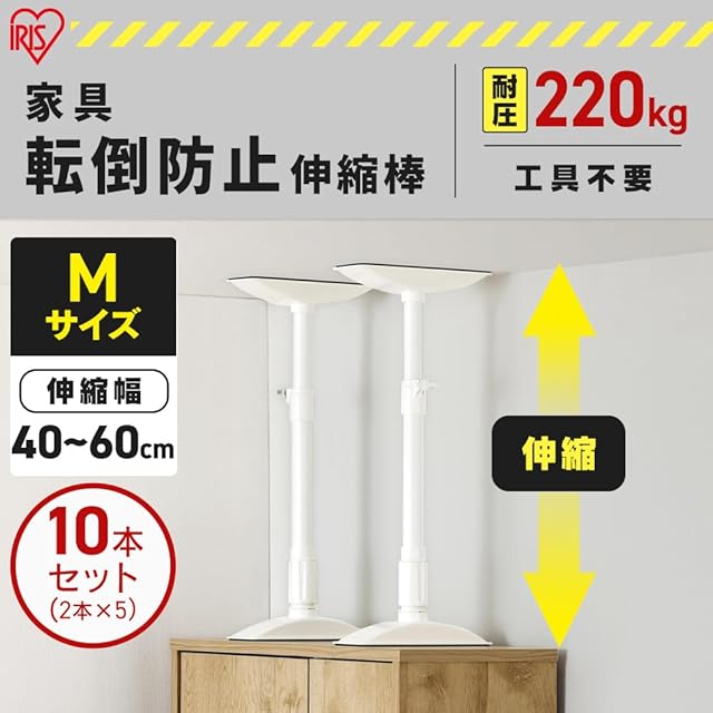 【10本セット】アイリスオーヤマ 転倒防止 突っ張り棒 転倒防止棒 転倒防止器具 転倒防止用突っ張り棒 転倒防止 家具転倒防止伸縮棒Mサイズ ホワイト KTB-40R 突っ張り棒 強力 伸縮棒 防災用品 転倒防止棒 防災グッズ 地震対策 耐圧約220kg Mサイズ