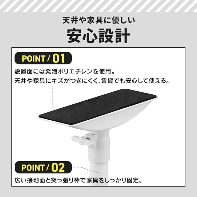 天井や家具を傷つけず、しっかり固定。