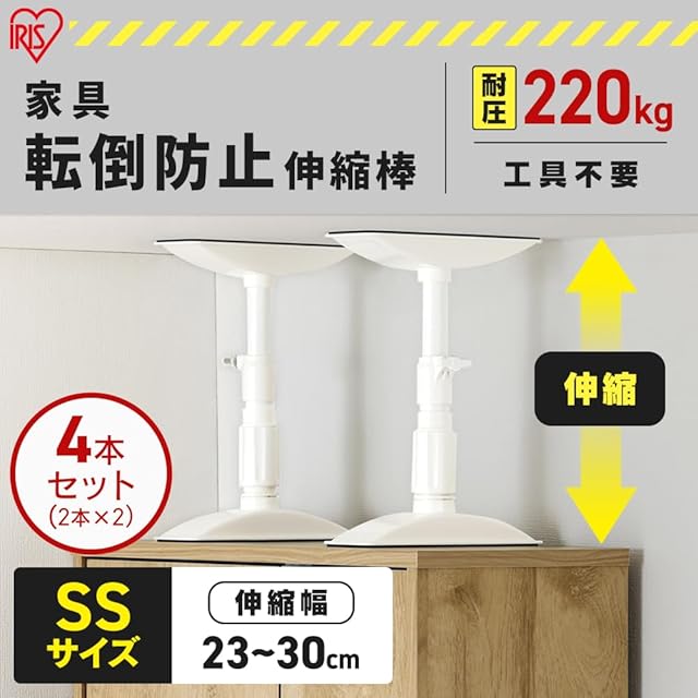 【4本セット】アイリスオーヤマ 転倒防止 突っ張り棒 転倒防止棒 転倒防止器具 転倒防止用突っ張り棒 転倒防止 家具転倒防止伸縮棒SSサイズ ホワイト KTB-23R 突っ張り棒 強力 伸縮棒 防災用品 転倒防止棒 防災グッズ 地震対策 耐圧約220kg SSサイズ