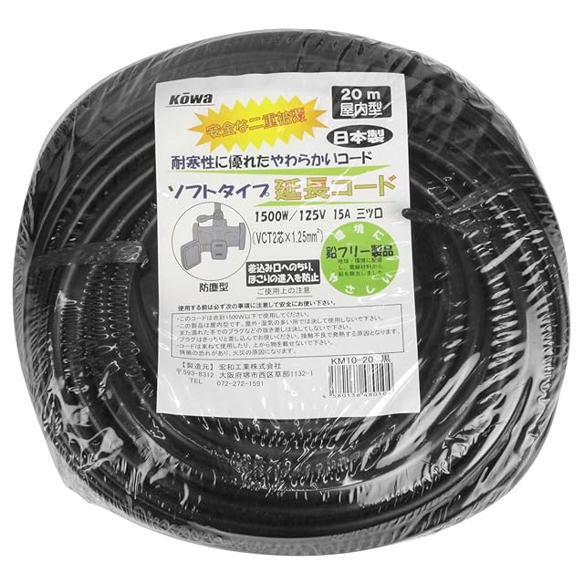 商品名:kowa ソフトタイプ 延長コード 15A・20m 3ツ口 クロ KM10-20 日本製