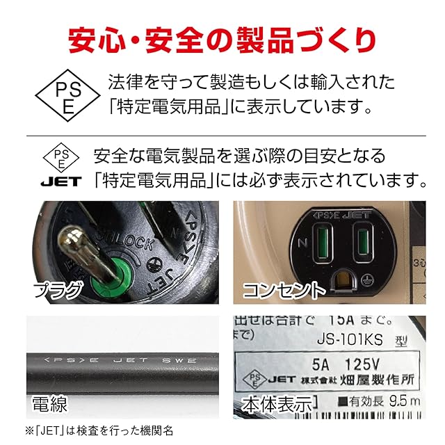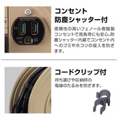 その他特長:温度センサー内蔵(電線溶解防止機能)、2P/2P接地付兼用フキュートビプラグ、コンセント防塵シャッター