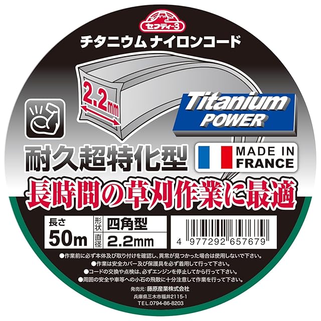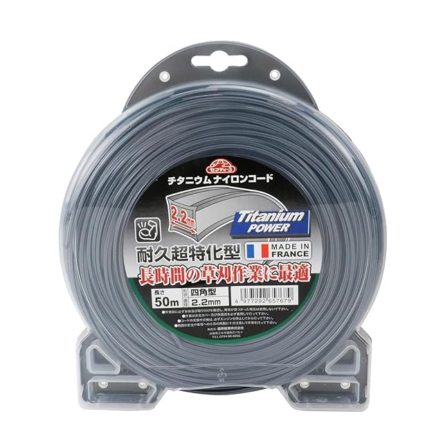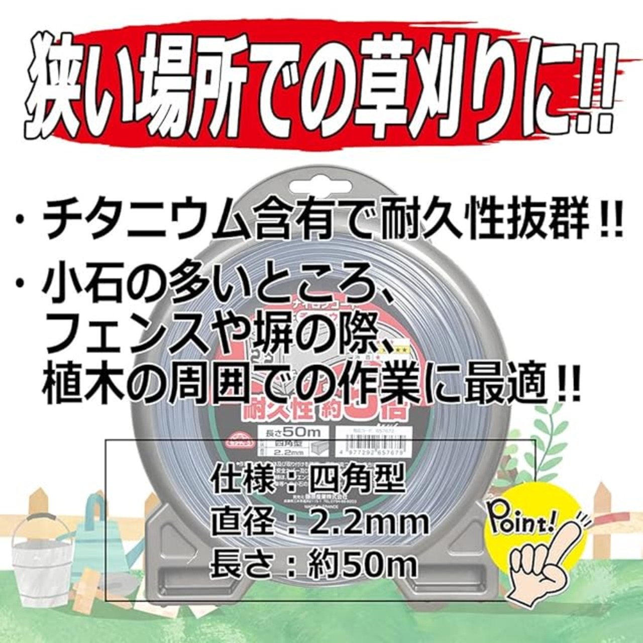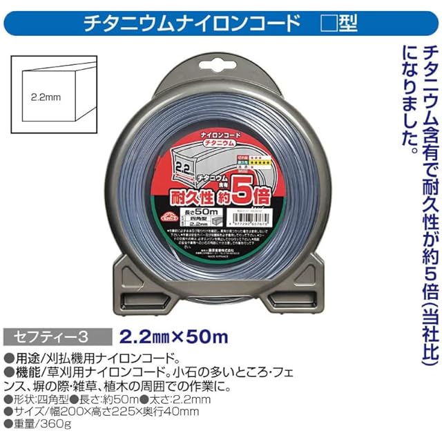 商品名:セフティー3(Safety-3) 草刈・刈払機用 耐久性約5倍 チタニウムナイロンコード 50m 四角型 2.2mm径