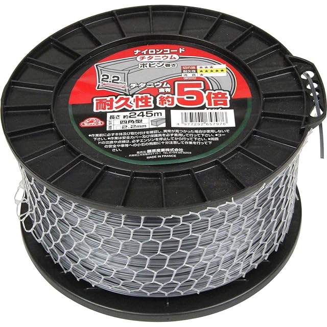 商品名:セフティー3(Safety-3) 草刈・刈払機用 耐久性約5倍 チタニウムナイロンコード 245m 四角型 2.2mm径