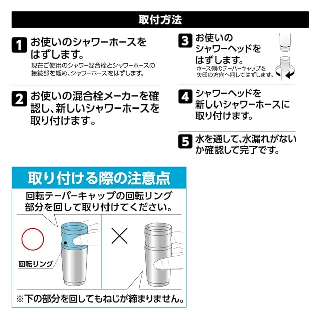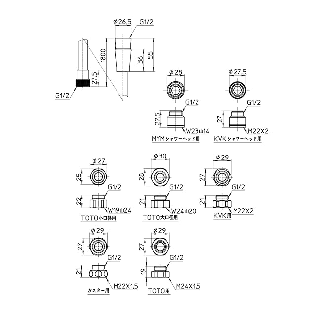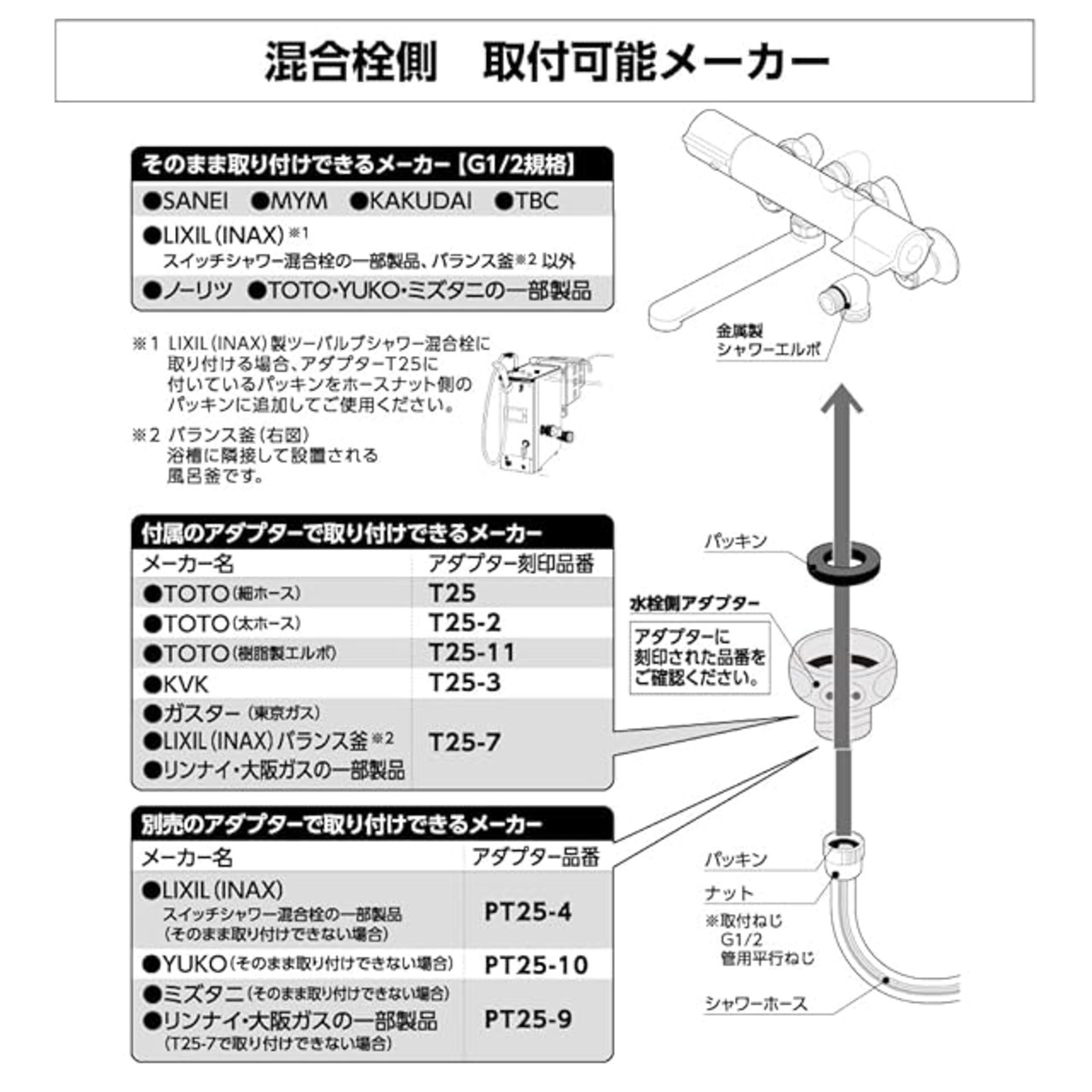 商品タイプ:シャワー側・水栓側アダプター付