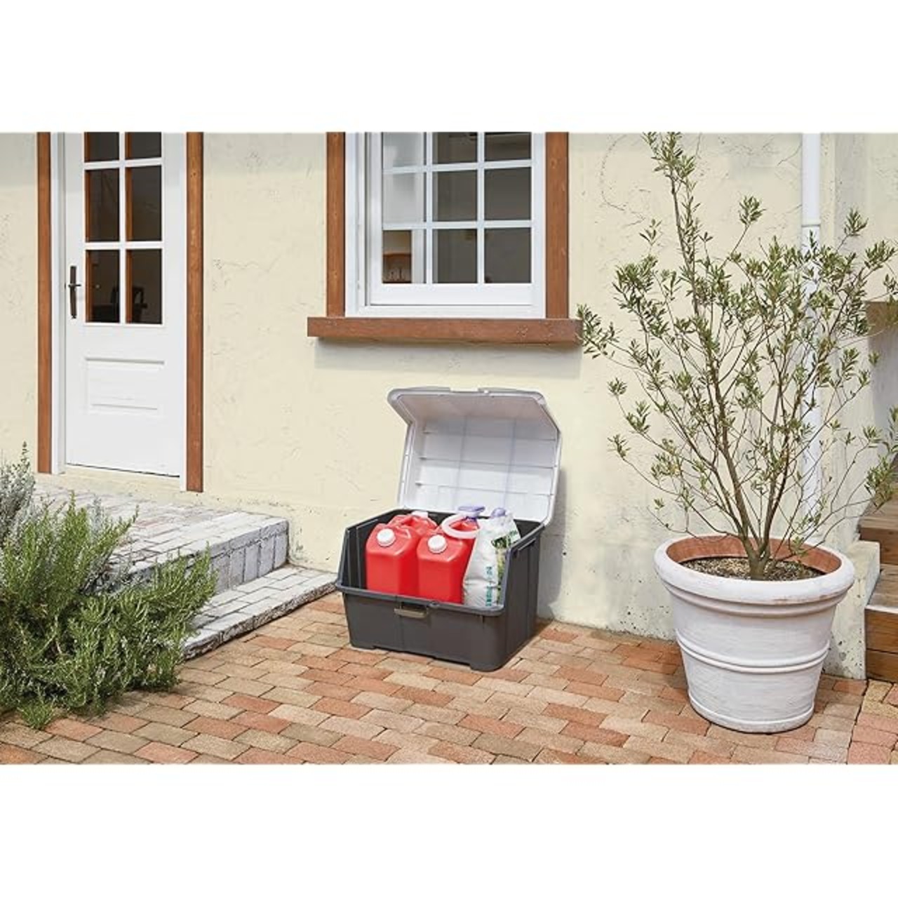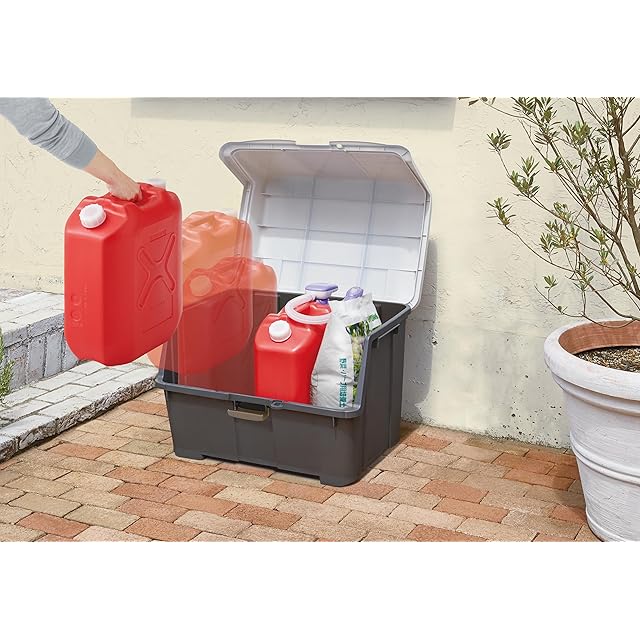 天馬(Tenma) 大容量の屋外収納ボックス 日本製 重い物でも取り出しやすい大きく開くコンテナ ベランダ収納 ホームボックス 灯油タンクにピッタリな収納ストッカー 鍵穴付きで防犯対策 収納ケース 宅配ボックス ゴミ箱 プラスチック 大きく開くコンテナ95L 【色 チャコールグレー】 【サイズ 95L】 【幅62×奥行50×高さ50cm】 | emishop315