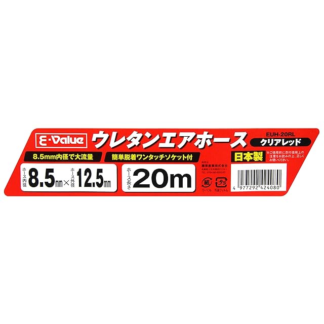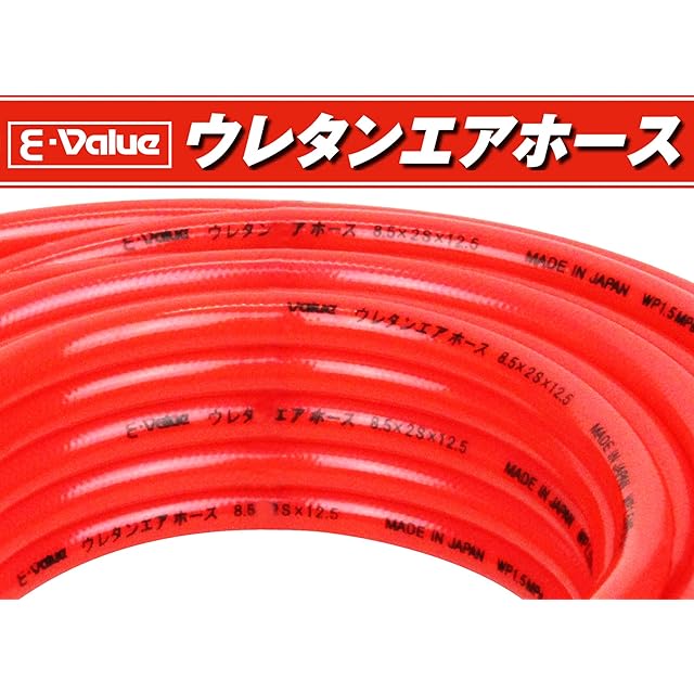 商品名:イーバリュー(E-Value) ウレタンエアホース 20m 常圧用 内径8.5mm×外径12.5mm 大流量 クリアレッド EUH-20RL 8.5 日本製