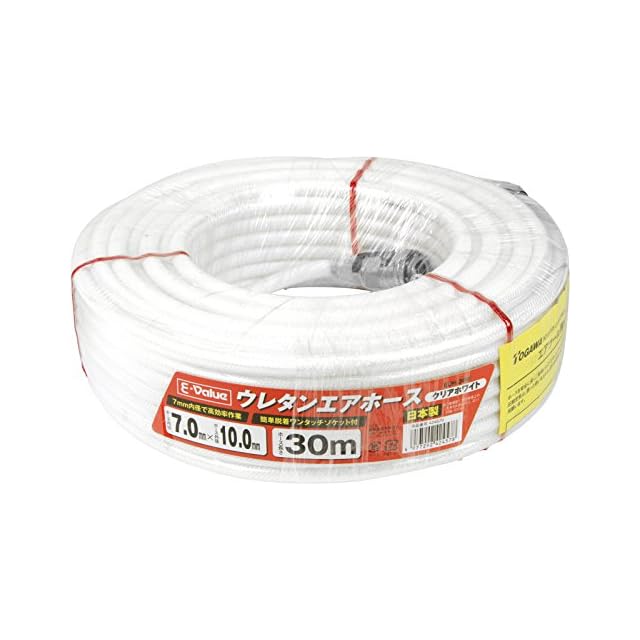 イーバリュー(E-Value) ウレタンエアホース 30m 常圧用 内径7.0mm×外径10.0mm クリアホワイト EUH-30W 日本製