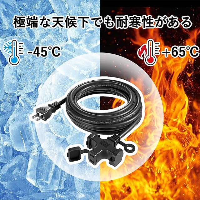 ■【高品質】耐寒性に優れたやわらかい電線を使用した延長コード。コードは安全の二重被覆構造です。