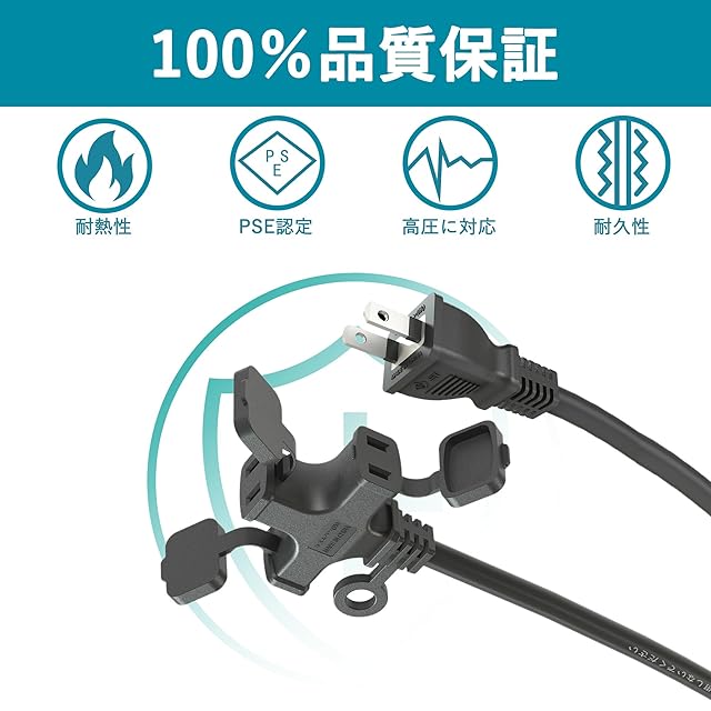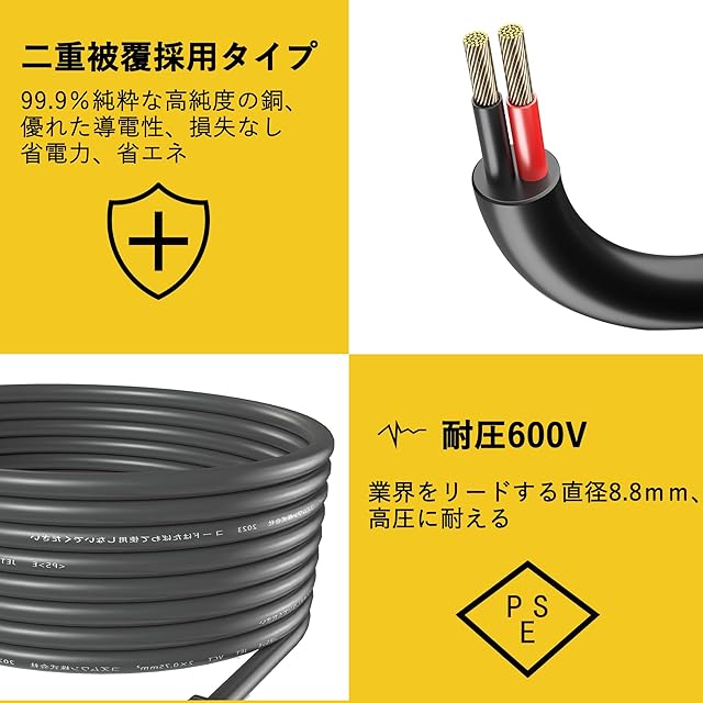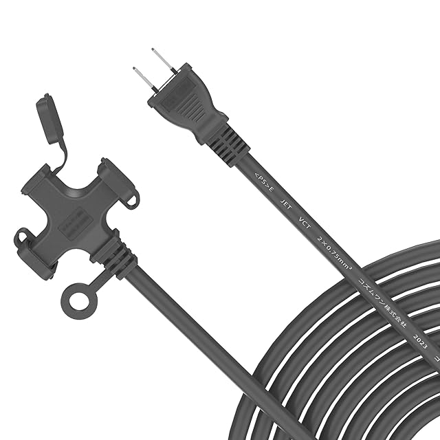 ●定格電圧 / 電流:AC100V 50/60Hz(12A/125Vまで) 色:黒 電線仕様: VCT 2芯×0.75mm2 導線:銅線 耐寒 耐熱 高寿命
