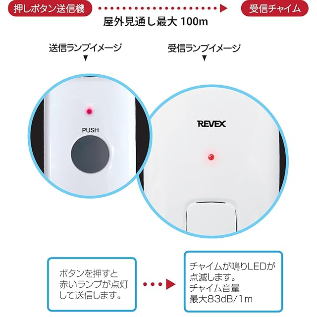 商品名:リーベックス(Revex) ワイヤレス チャイム インターホン 呼び出しボタンコールセット LCW50