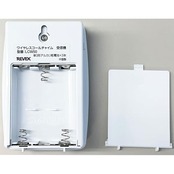 押しボタン送信機:サイズ(約)/46×77×26mm (38g ※電池含まず)、電源/DC6Vコイン型リチウム電池CR2032×2個 (テスト用付属)、電池寿命/約1年半 (1日10回送信・気温20度時)、送信周波数/315MHz帯域、IDコード数/6万通り、選曲/内部の選曲ボタンにより3曲から選曲可能、使用エリア/屋内または屋外軒下 (防沫型・IP44)