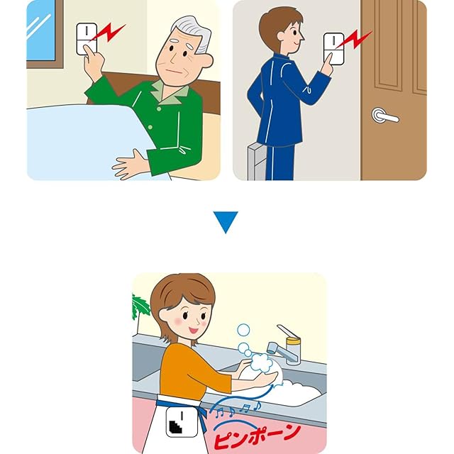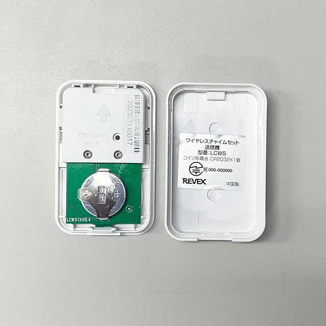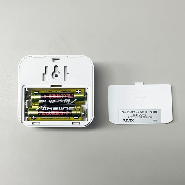 電源:押しボタン送信機/DC3V コイン型リチウム電池CR2032×1個 (テスト用付属)、受信チャイム/DC3.0V 単3アルカリ乾電池2本 (別売り)